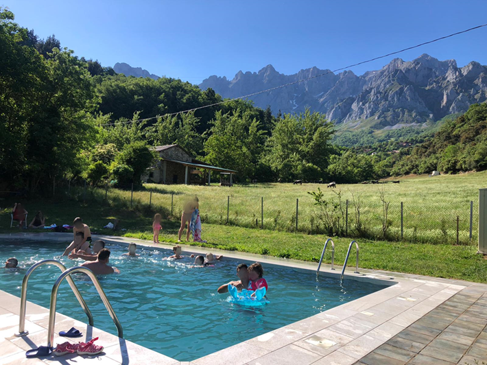 Desde la piscina se pueden admirar numerosos picos del Macizo Oriental de los Picos de Europa. En verano, la piscina está abierta desde las 08:00 de la mañana hasta las 22:00 para poder aprovechar los diferentes momentos del día y de tus vacaciones.